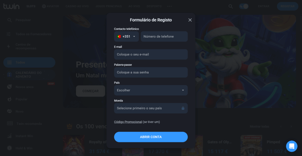 Uma das coisas boas de escolher um casino como este é que o seu ambiente prático e acessível deixa mais tempo para o que realmente importa – a diversão. Antes de fazeres o Twin login, precisas de criar conta e isso é muito fácil. Segue os seguintes passos e rapidamente, em segurança e sem erros, crias a tua conta: