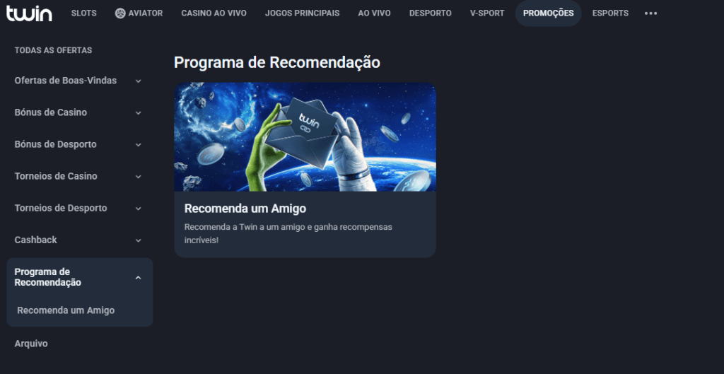 No casino, podem surgir diferentes formatos de bónus sem depósito, integrados em campanhas específicas. Um exemplo é o Programa de Recomendação com um bónus sem depósito de 75 Rodadas Grátis Twin Casino.